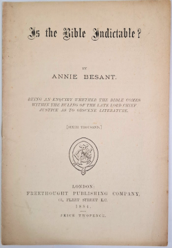 Is the Bible Indictable? Being an Inquiry Whether the Bible Comes Within the Ruling of the Lord Chief Justice as to Obscene Literature